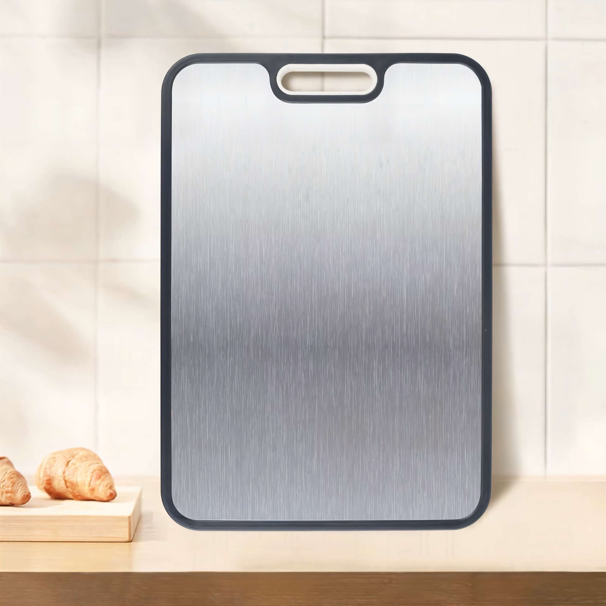 Ein hochwertiges Schneidebrett für maximale Hygiene und Präzision. Die Kombination aus Edelstahl und Weizenstroh bietet eine langlebige, sichere und vielseitige Lösung für jede Küche. Die doppelseitige Oberfläche ermöglicht eine hygienische Trennung von Fleisch und Gemüse und verhindert Kreuzkontaminationen.