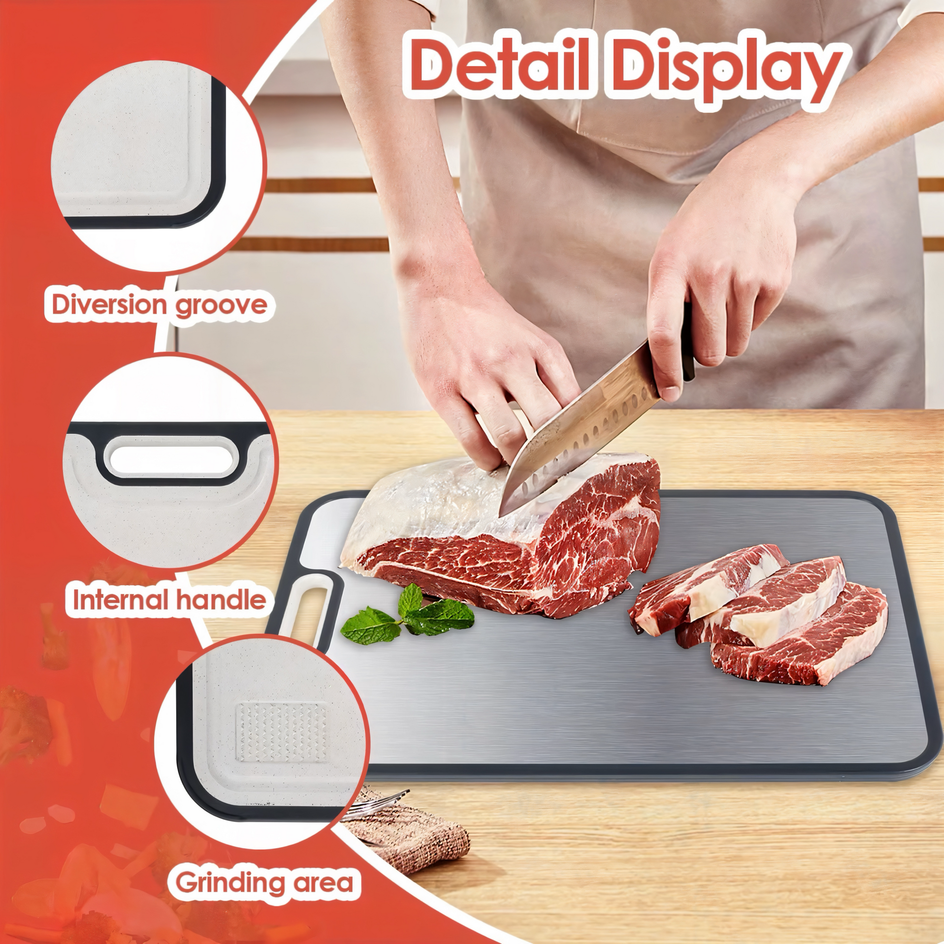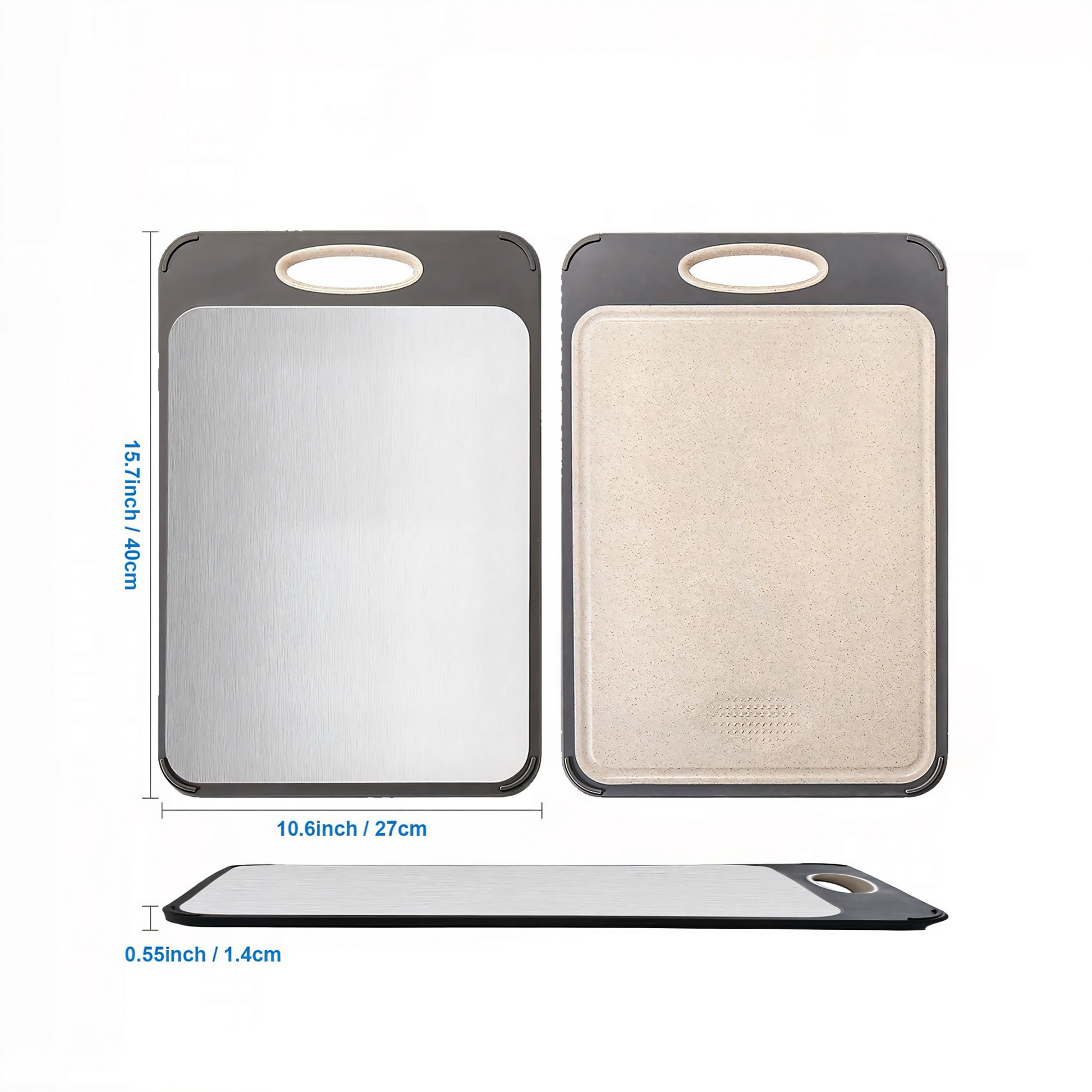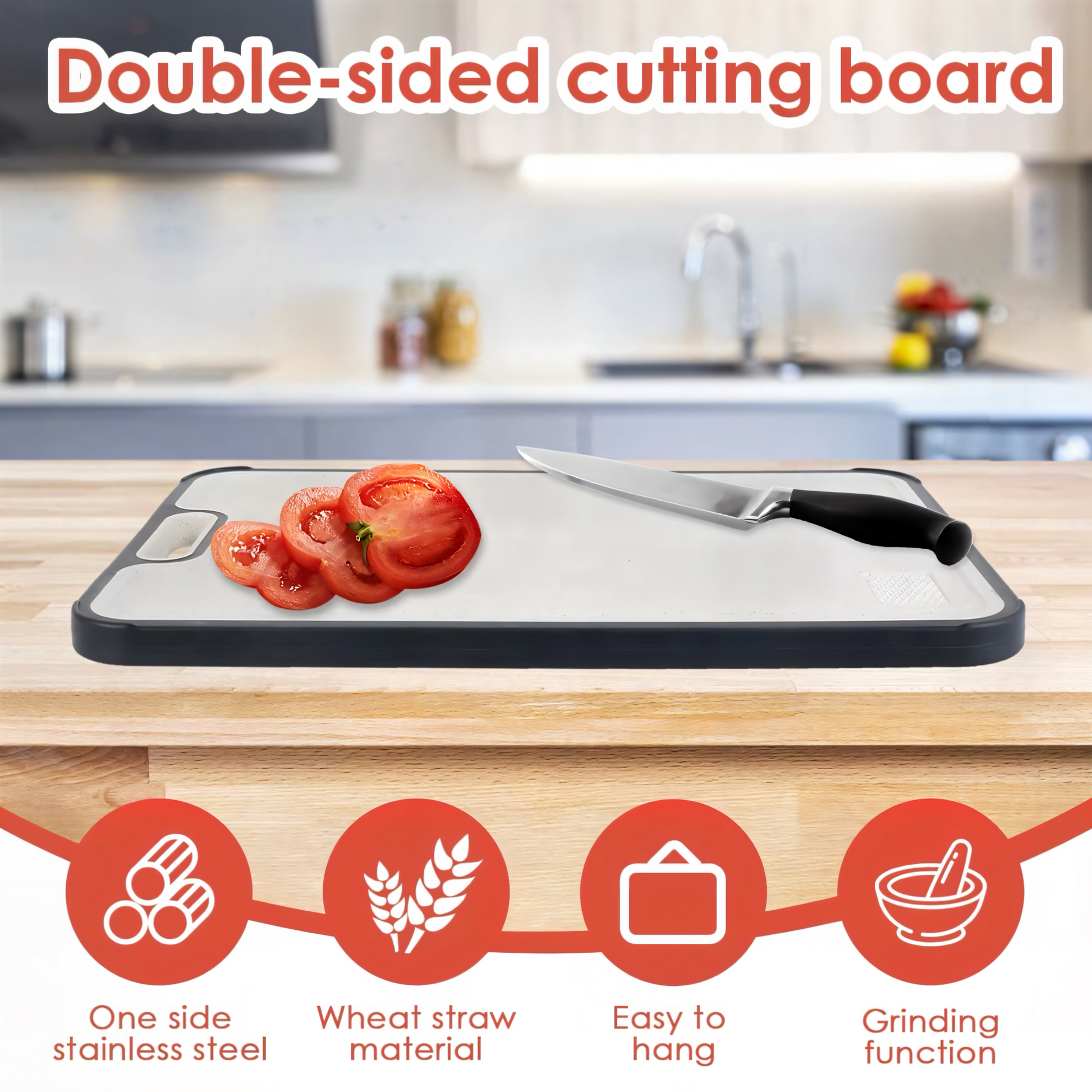 Doppelseitiges Schneidebrett – Edelstahl & Weizenstroh – Rutschfest, Hygienisch & Langlebig – Perfekt für Fleisch, Gemüse & Obst – Leicht zu reinigen
