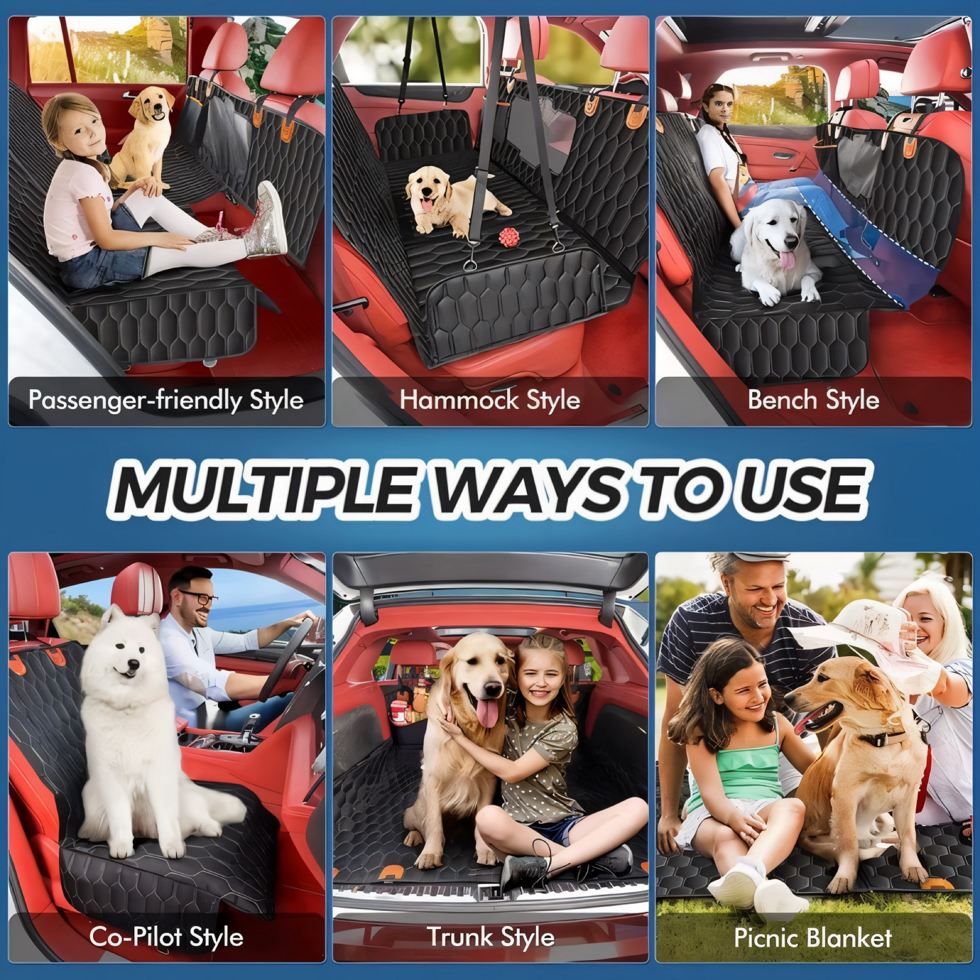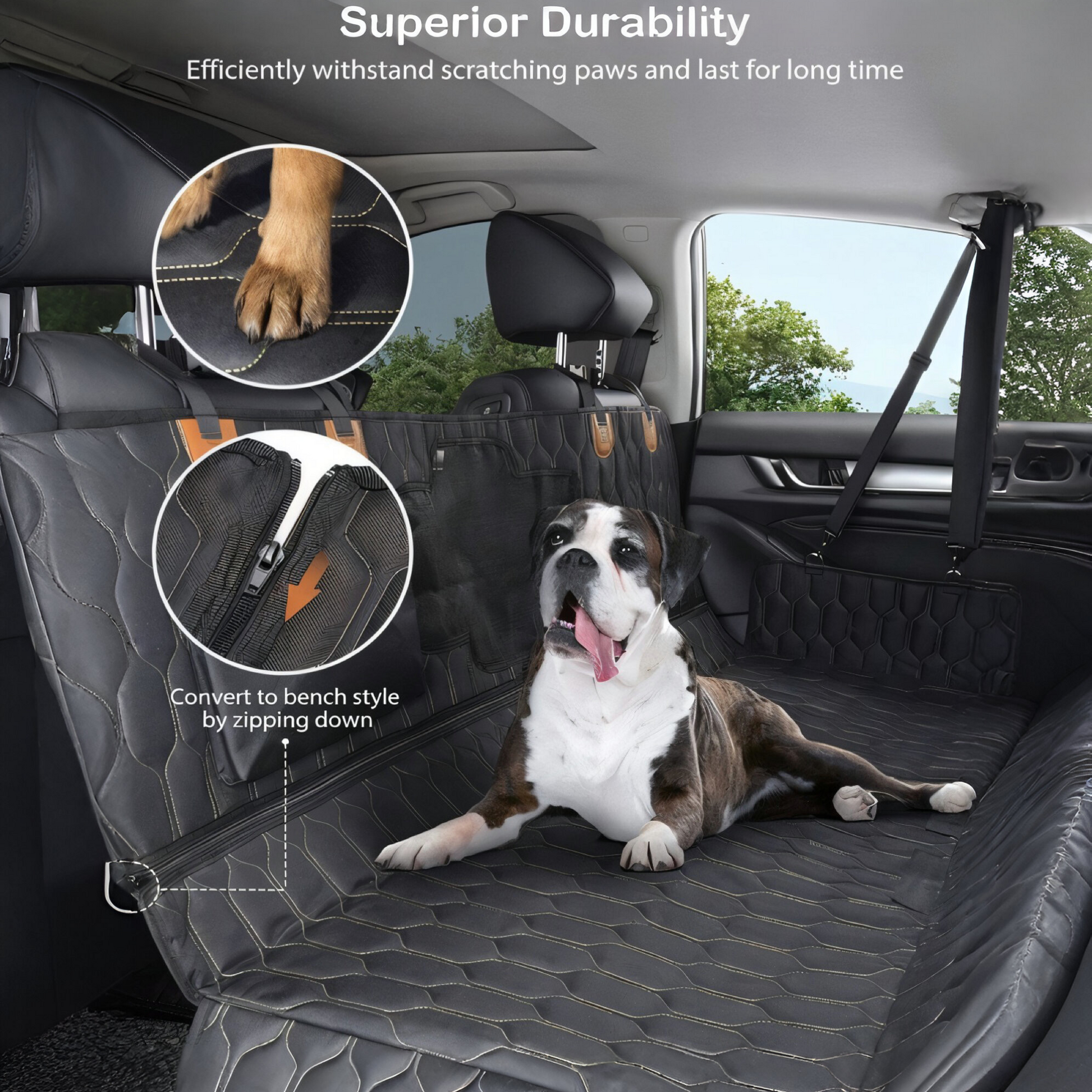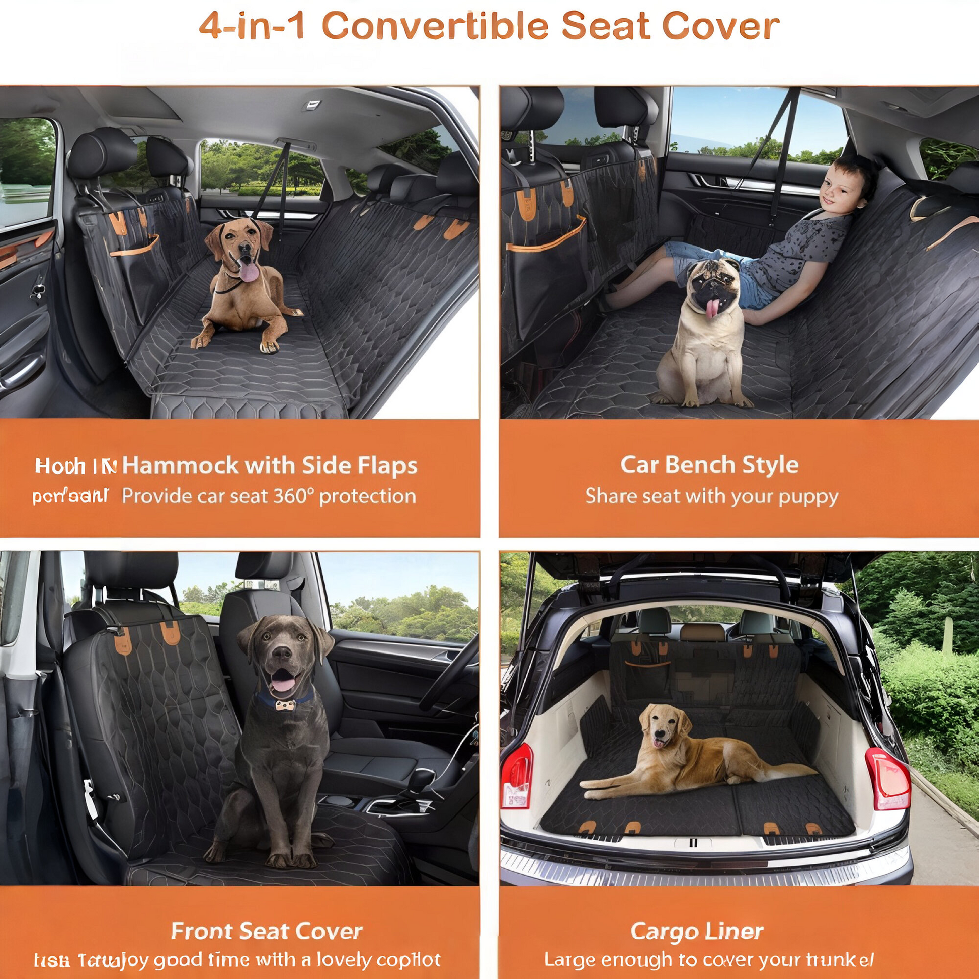 4-in-1 Premium Hundesitzbezug für Auto – Wasserdicht, Kratzfest & Rutschfest | Universeller Rücksitz- & Kofferraumschutz mit Netzfenster für bessere Belüftung | Perfekt für Hunde & Haustiere