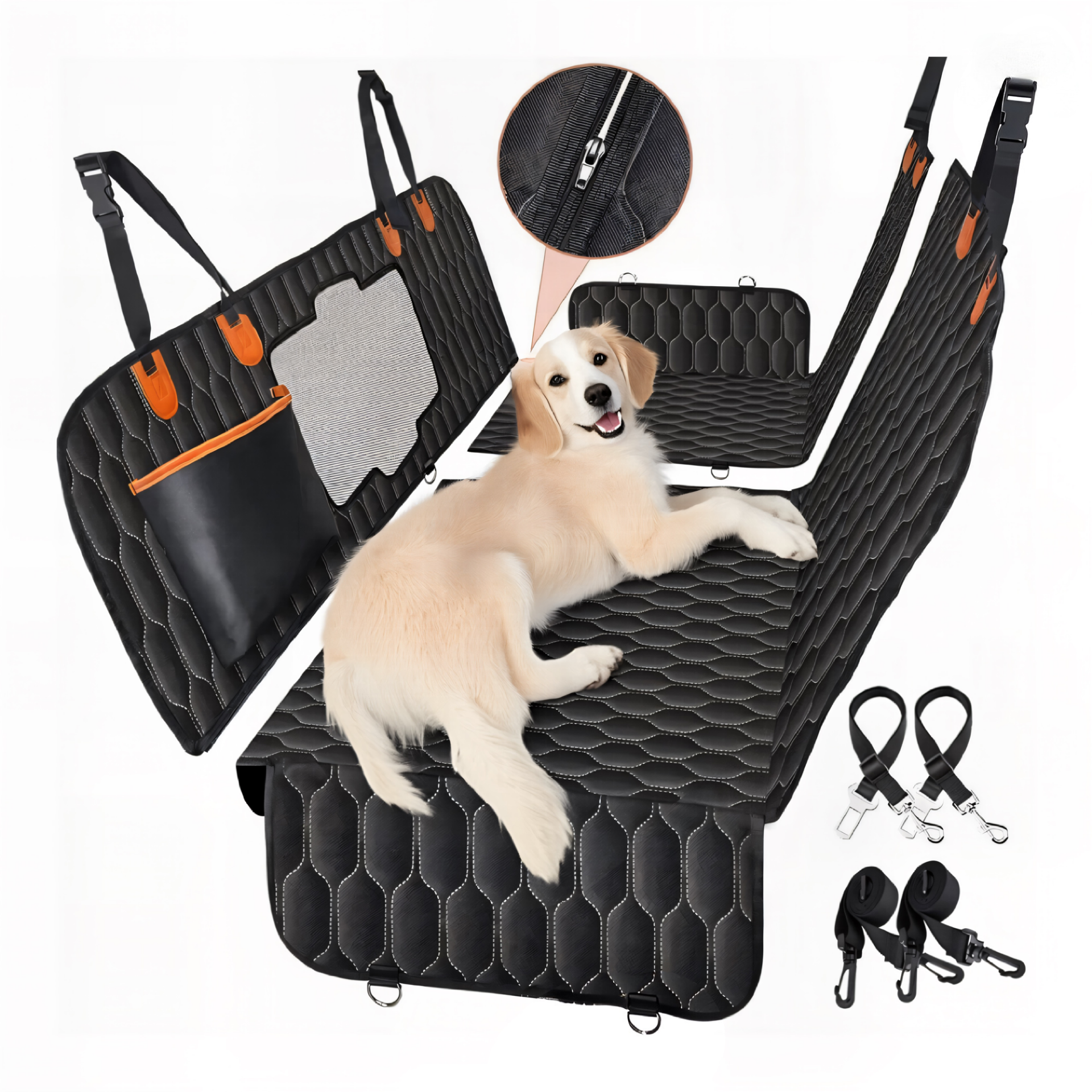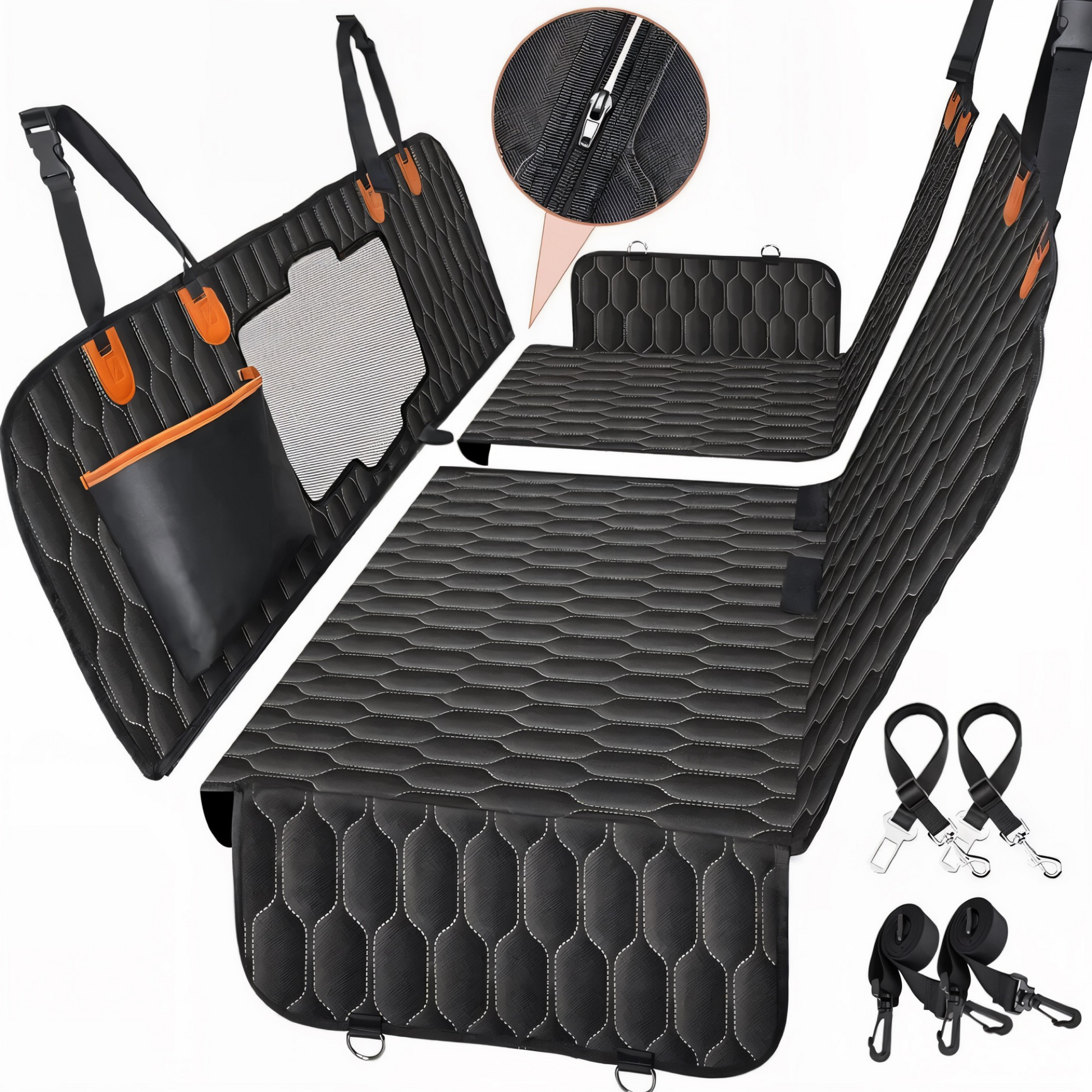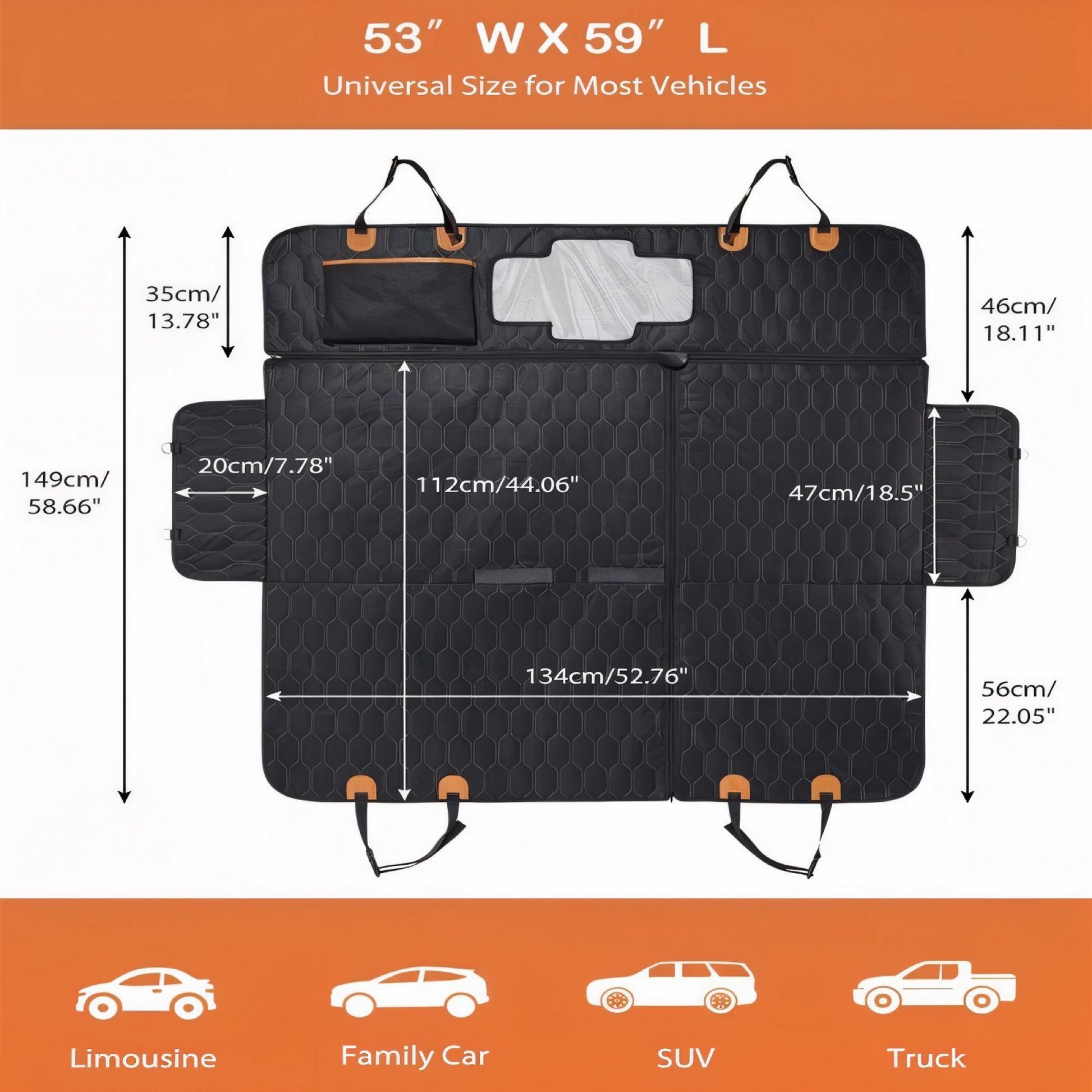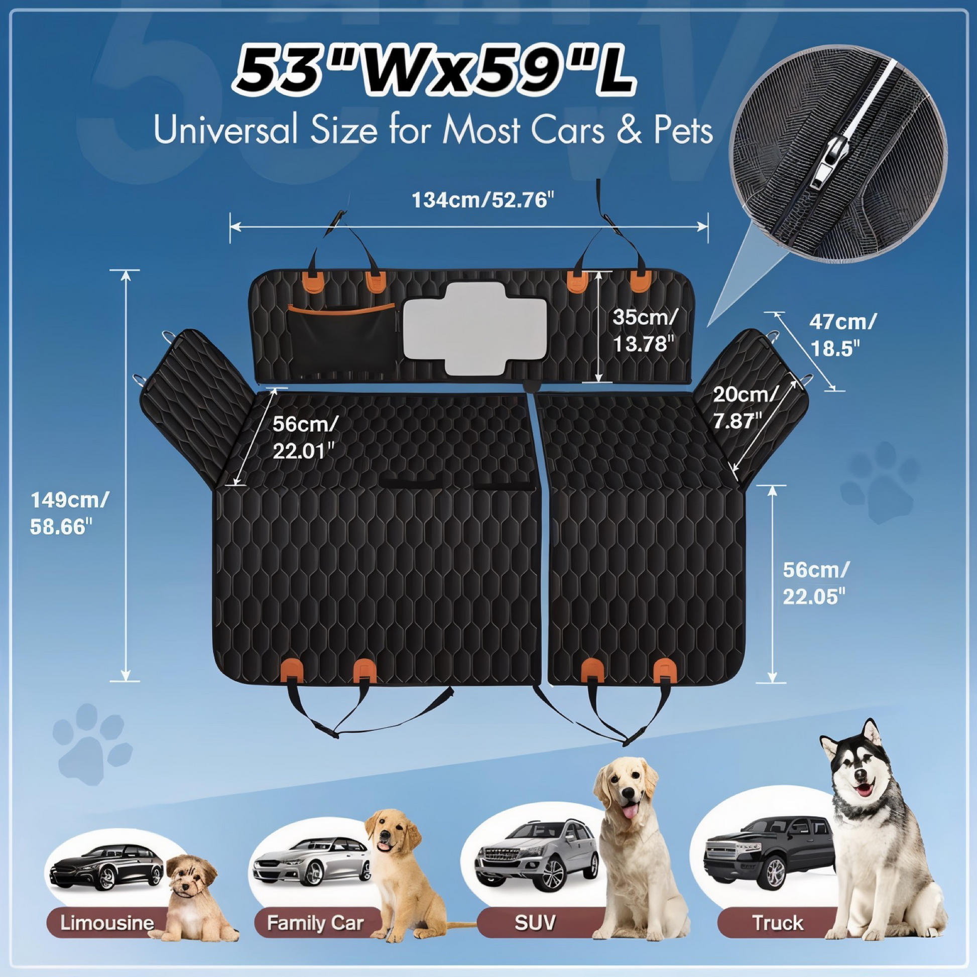 4-in-1 Premium Hundesitzbezug für Auto – Wasserdicht, Kratzfest & Rutschfest | Universeller Rücksitz- & Kofferraumschutz mit Netzfenster für bessere Belüftung | Perfekt für Hunde & Haustiere